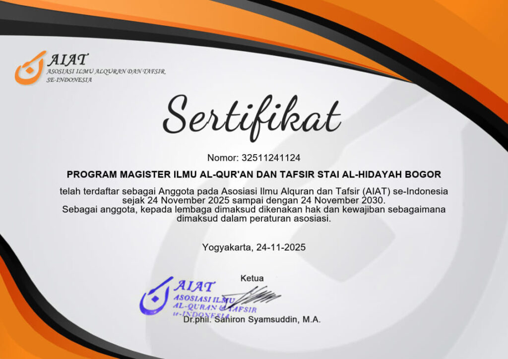 STAI Al-Hidayah Bogor Resmi Terima SK Izin Penyelenggaraan Prodi Magister Ilmu Al-Qur’an dan Tafsir (IAT) Bogor, 26 Mei 2025 —